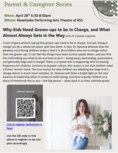 Please join us on April 28th at 6:30 in the Revelstoke Performing Arts Center at RSS. This will be our final presentation of the Parent Caregiver Series this year, and we are please to offer an in-person presentation by Vanessa LaPointe.