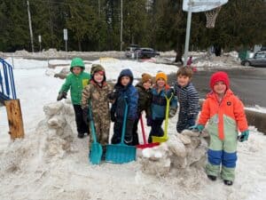 Our students have taken advantage of the little bit of snow we had this year by building, shovelling, sliding and tobogganing. Basketball and 4 Square have been popular playground activities as well as playing in the forest.